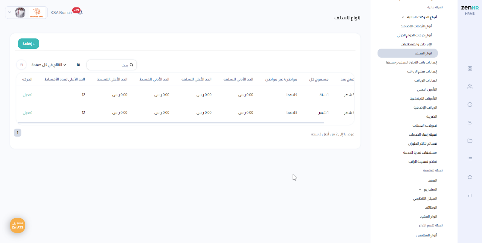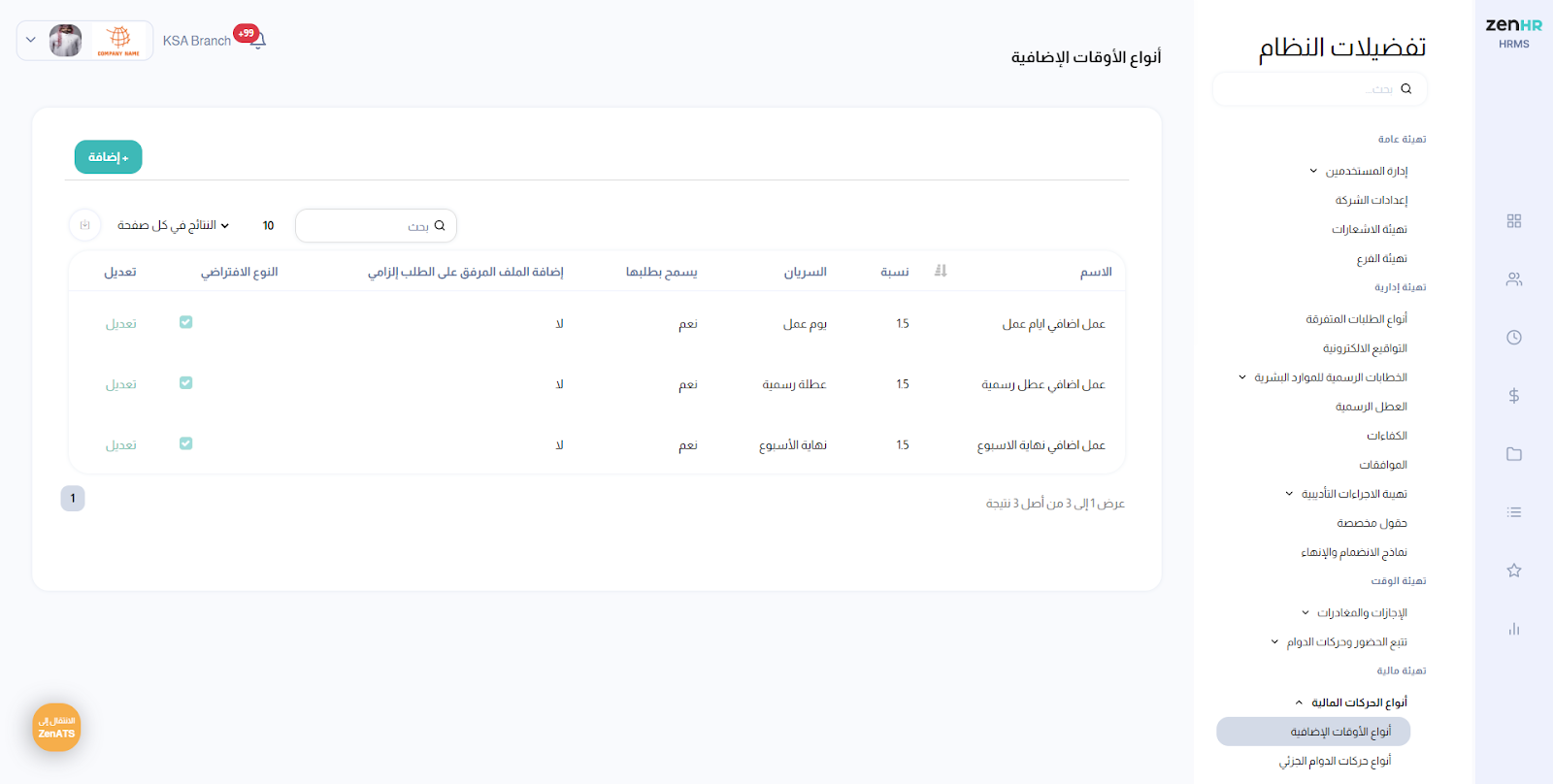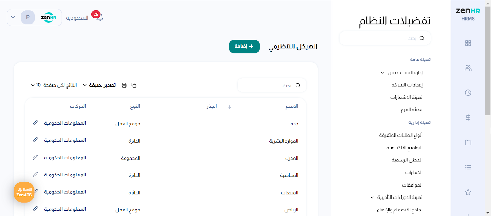 الرمز في ZenHR