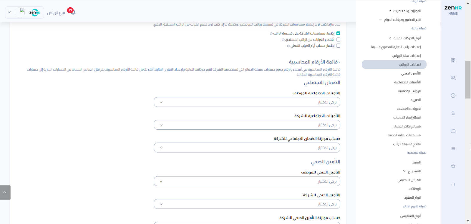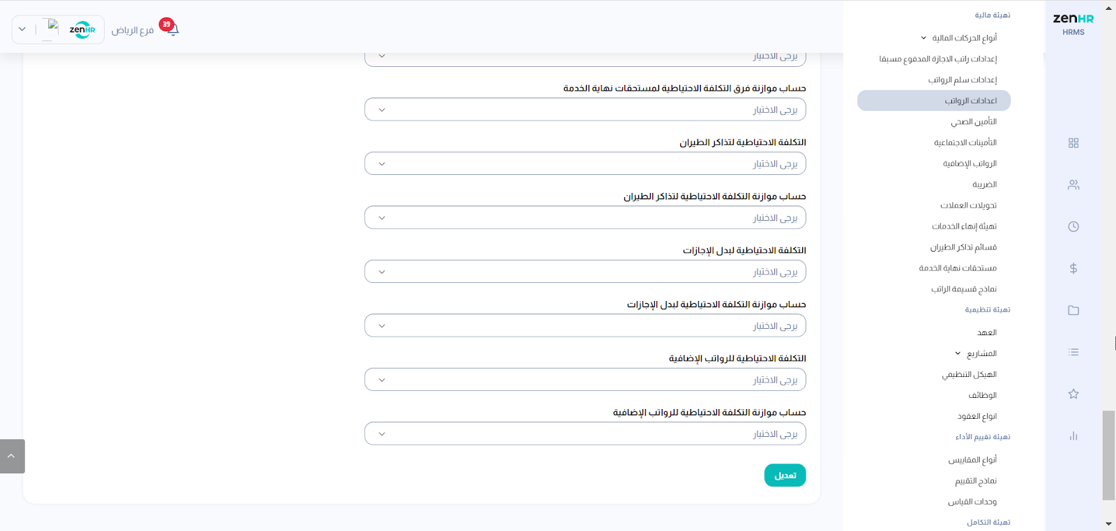 إضافة قائمة الأرقام المحاسبية للرواتب على ZenHR باتباع الخطوات التالية: