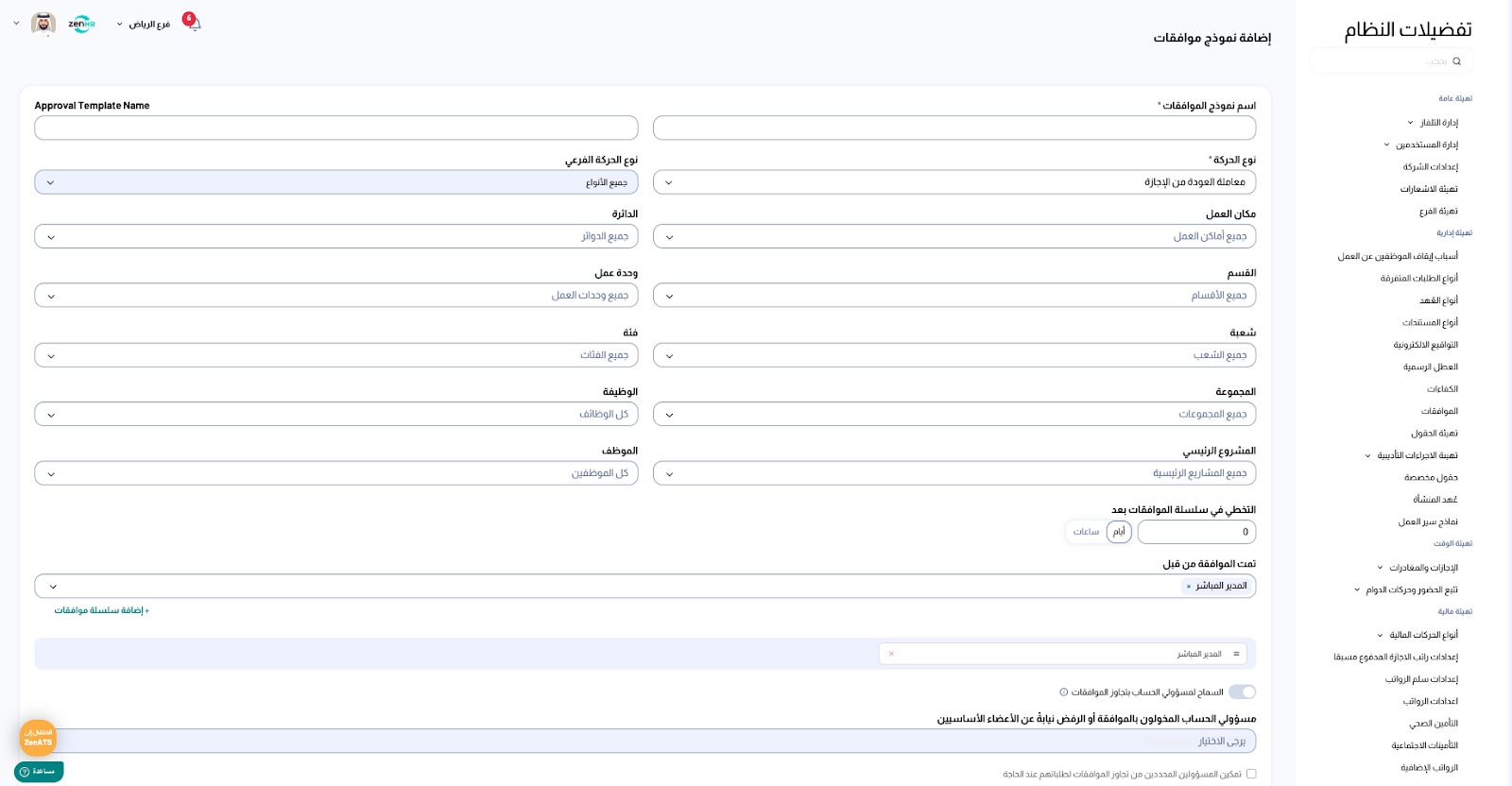 يمكنك تحديد سلسلة الموافقات المتعلقة بالعودة من الإجازة من خلال صفحة سلسلة الموافقات ضمن تفضيلات النظام. يساعد ذلك في ضمان مرور طلبات العودة من الإجازة استئناف الدوام عبر التسلسل الإداري المناسب قبل اعتمادها نهائياً.