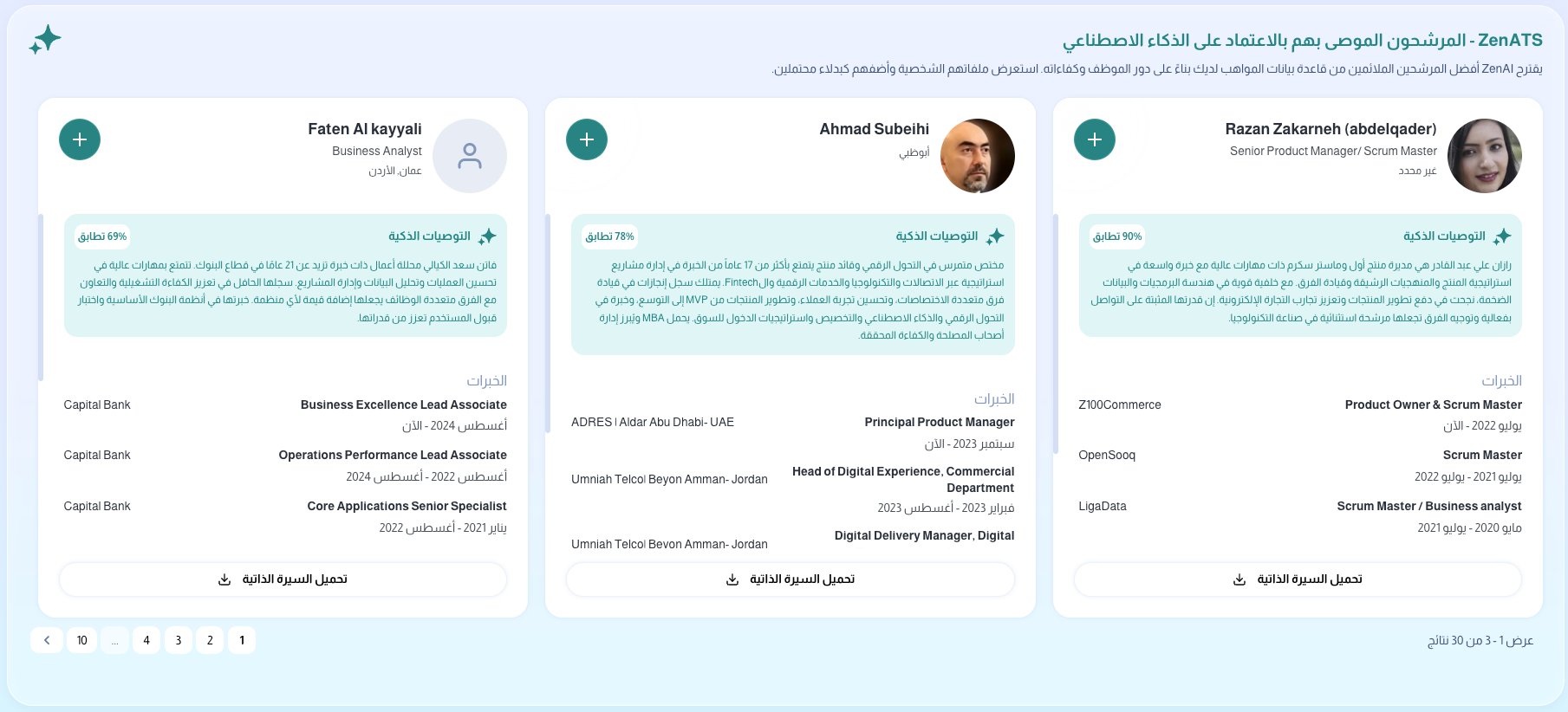 المرشحون الموصى بهم عبر الذكاء الاصطناعي من ZenATS