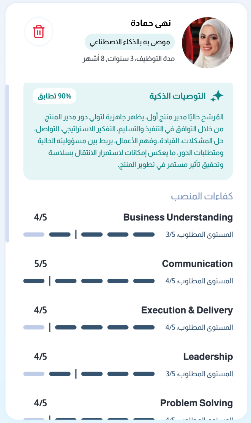 نسبة المطابقة، مع شرح واضح لسبب ترشيح هذا الموظف.