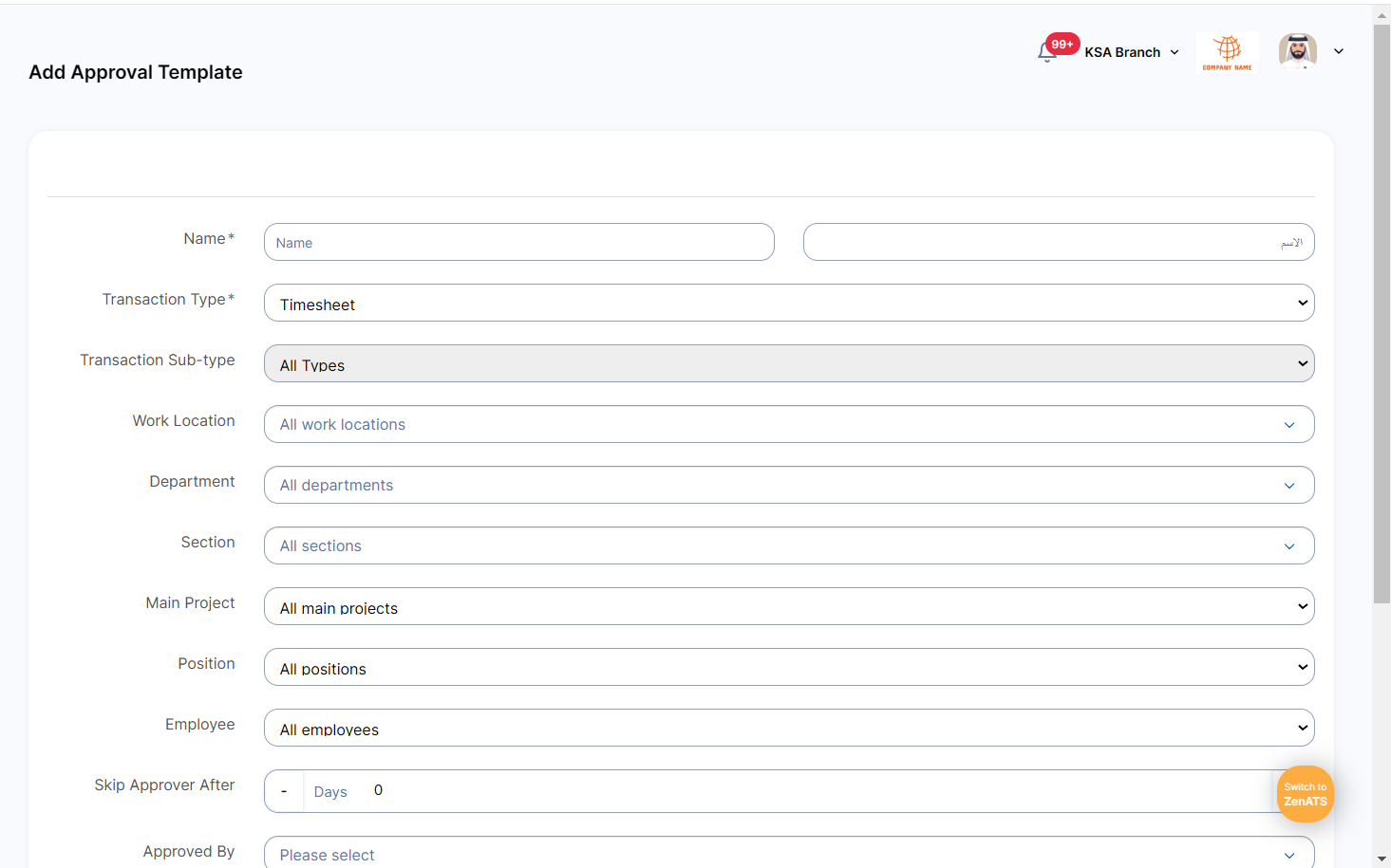 You will be able to define the timesheets approval cycle the same way of doing it for the time-off requests. This approval cycle will be used when the employee created his timesheet and send it to his manager or to the approval committee to be approved, and that based on the selected category from the approvals setup page.
