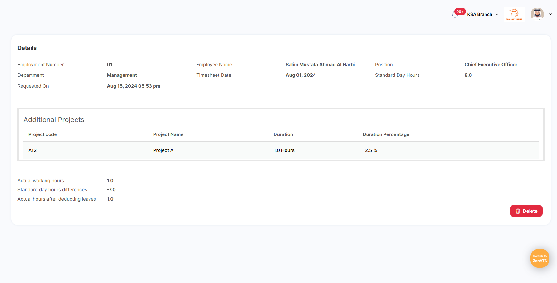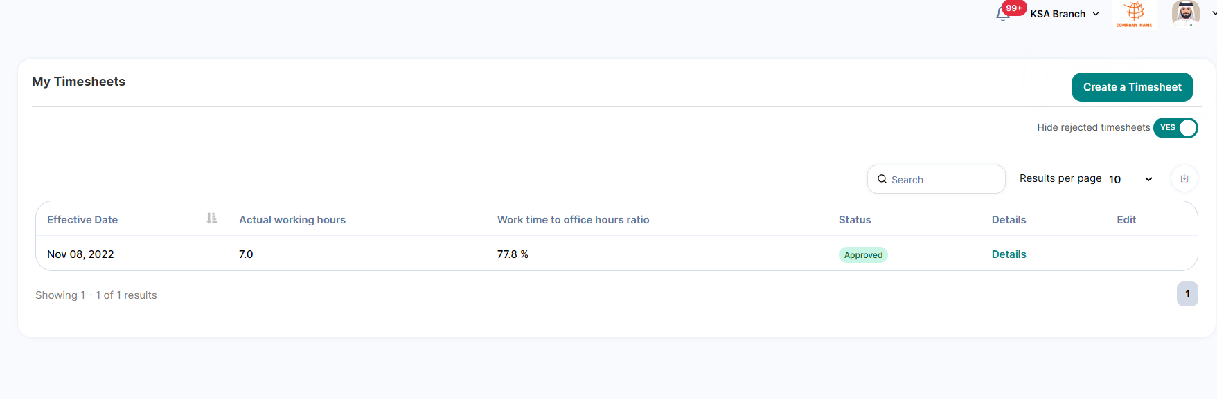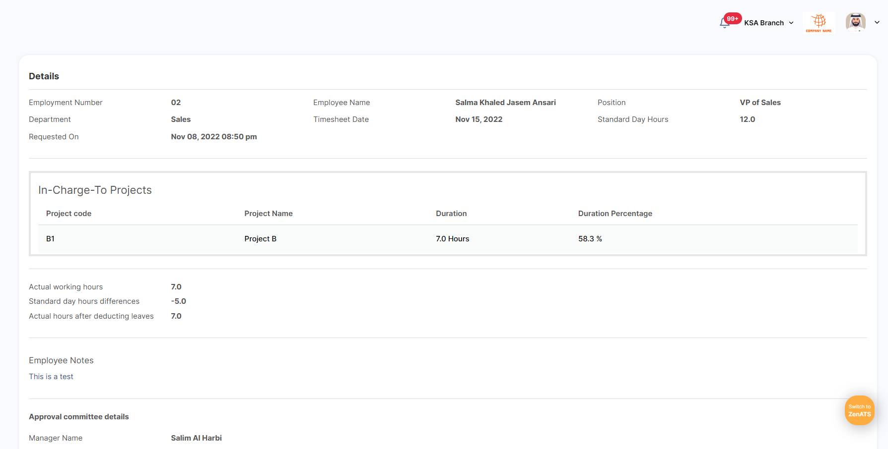 After sending the timesheet from the employee side, the manager will be able to check and approve it.