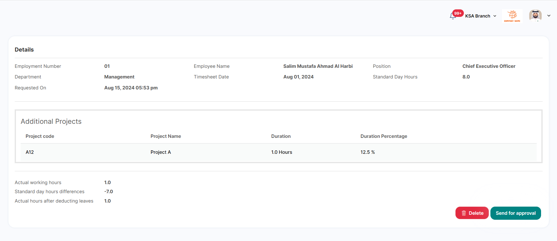 Through this page, the employee will be able to check, add timesheets and send it for the manager's approval.