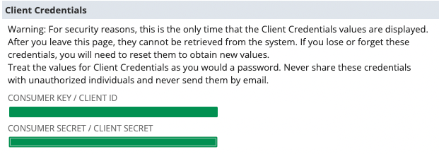 - A Consumer Key and Consumer Secret will be generated. Make sure that you copy and save them as they only appear once.