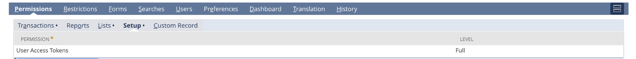 - From the Setup, make sure that the user has full permission on the User Access Token.