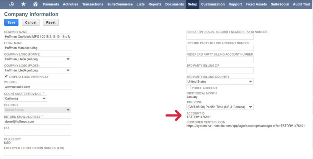 - Go to Setup → Company → Company Info and copy the Account ID.