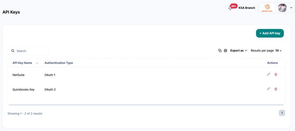 - Go to MarketPlace Integration Netsuite Setup → Add API Key then Save the whole page.