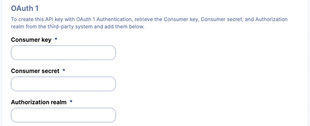 - Fill in the consumer key and consumer secret obtained from the Client ID & Secret generated from NetSuite, along with the Authentication Realm ( Account ID ) retrieved from the company information on NetSuite.