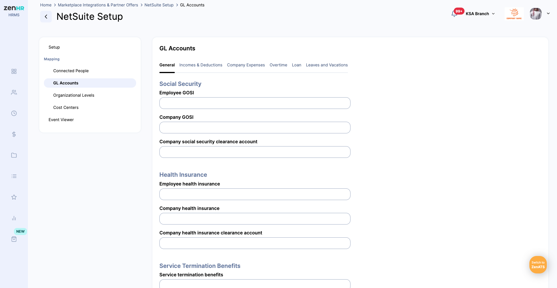 And now, the integration between ZenHR and NetSuite is currently active. It's important to ensure that the branch name on ZenHR aligns with the subsidiary name on NetSuite. Additionally, make sure that the organization levels (such as work location, departments, etc.) are consistent across both ZenHR and NetSuite.