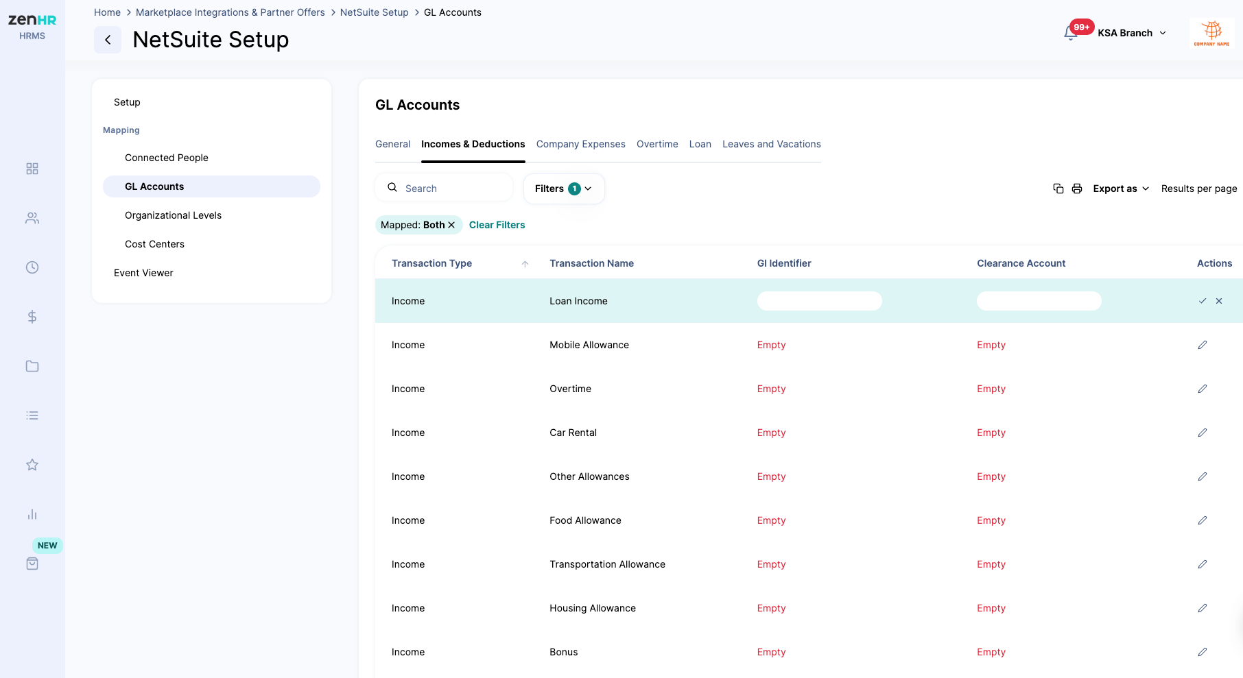 Mapping NetSuite GL Identifiers With ZenHR Financial Transactions