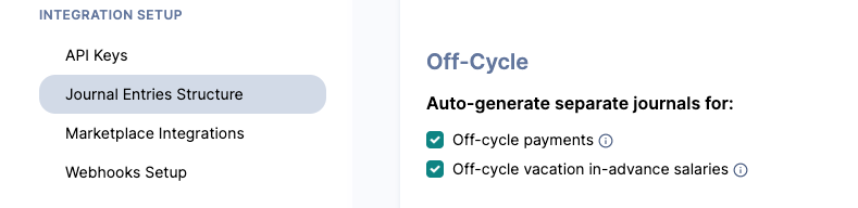 Activate the Auto-generate separate journals for off-cycle checkboxes Below and click “Save”.
