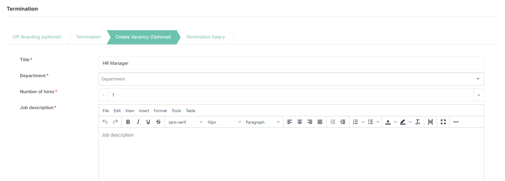 Uploading Documents - if there are any specific documents you would like the employee to upload, such as an employment agreement, handover documents, etc.
