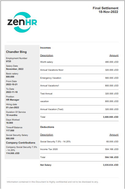 ZenHR also handles final settlements by calculating end-of-service entitlements and generating a downloadable settlement slip, ensuring a complete and compliant exit process.