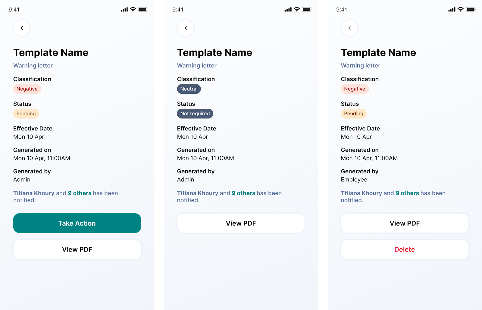 Take Action: You can Approve or reject the HR letters.
