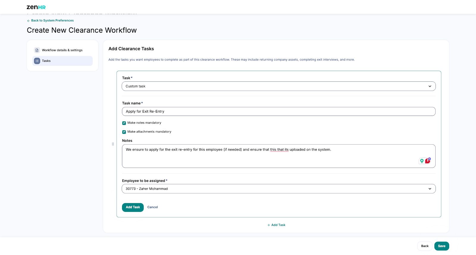 Custom Tasks: Add any additional steps you’d like employees to complete before their vacation, such as Exit/Reentry procedures, Delegation of Employees, or Encashment of End-of-Service Benefits.